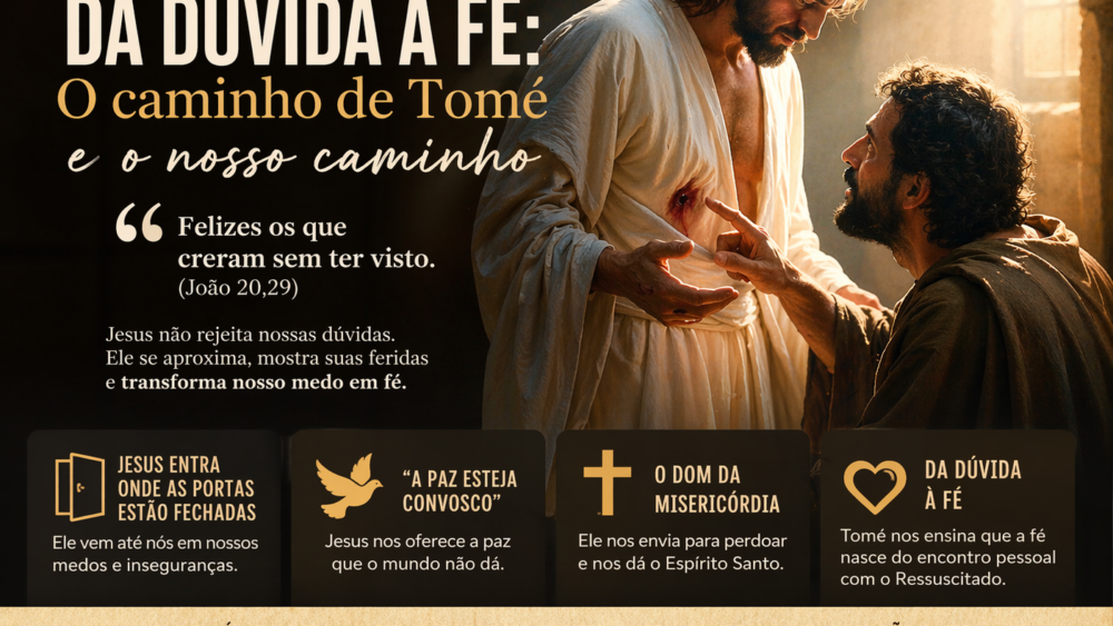 QUINTA-FEIRA 03/07/2025 SÃO TOMÉ, APÓSTOLO Evangelho - João 20,24-29 Proclamação do Evangelho de Jesus Cristo segundo João 24 Tomé, chamado Dídimo, que era um dos doze, não estava com eles quando Jesus veio. 25 Os outros discípulos contaram-lhe depois: “Vimos o Senhor!” Mas Tomé disse-lhes: “Se eu não vir a marca... read more →